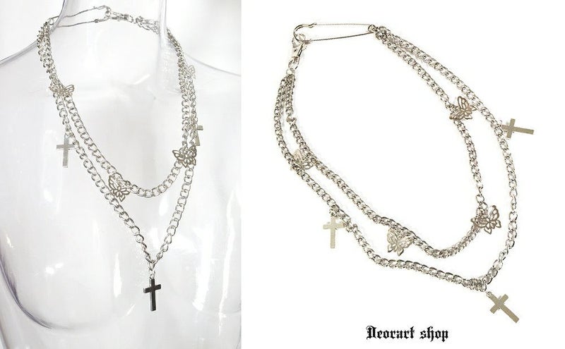 BY1167 バタフライ&クロス2連ネックレス [蝶・十字架]