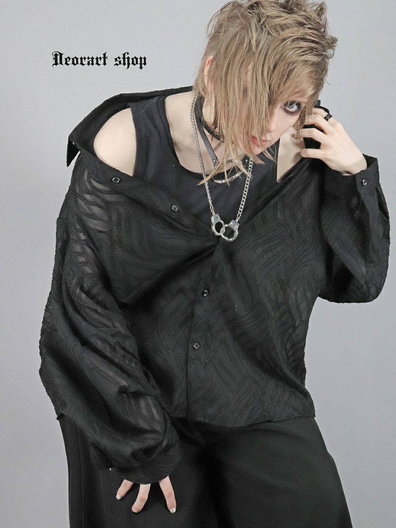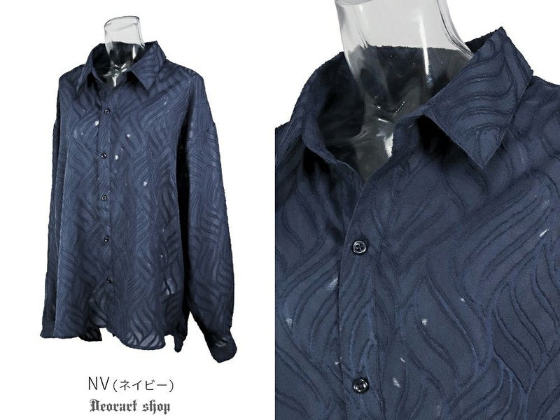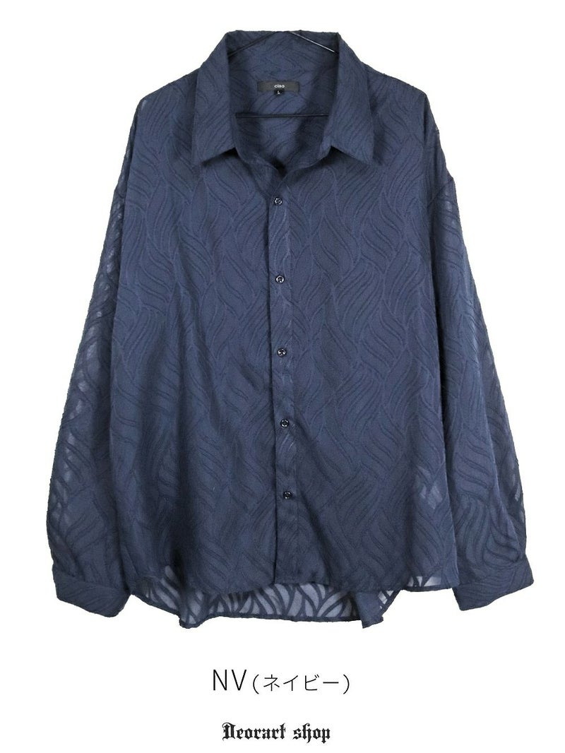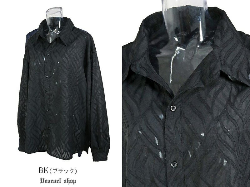 BY7094 透け感 シアー・ジャガードシャツ[リーフ柄]