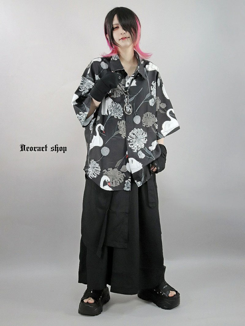 DDeorart,ディオラート,V系シャツ,柄シャツ,鳥柄,和柄,白鳥,ゴシック,バンド,ホスト,男装,衣装,オーバーサイズ,