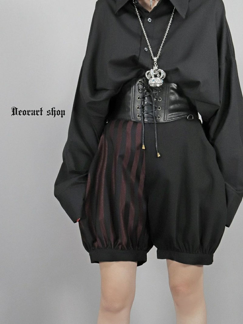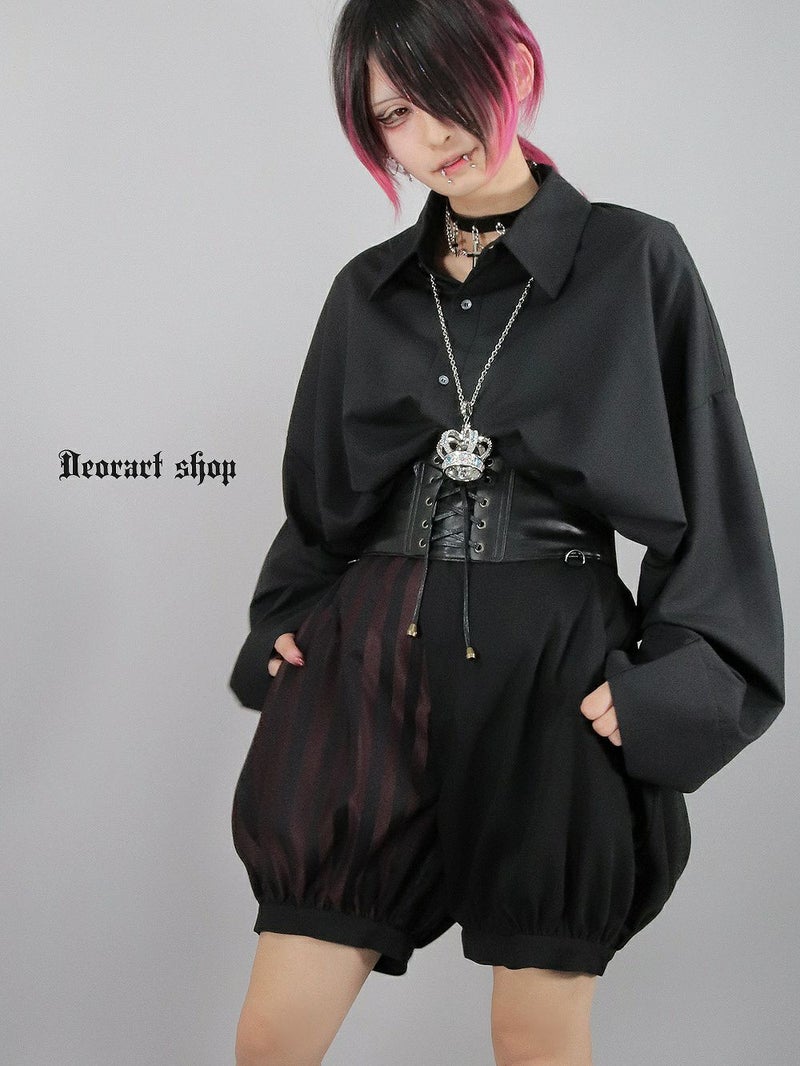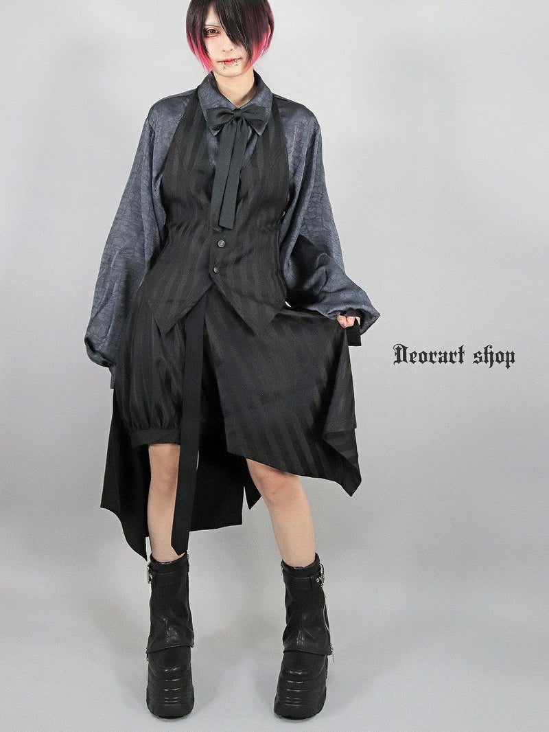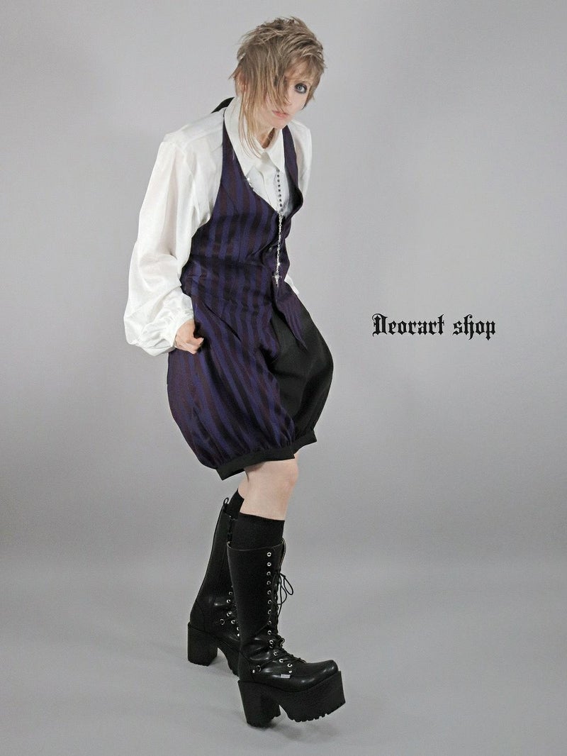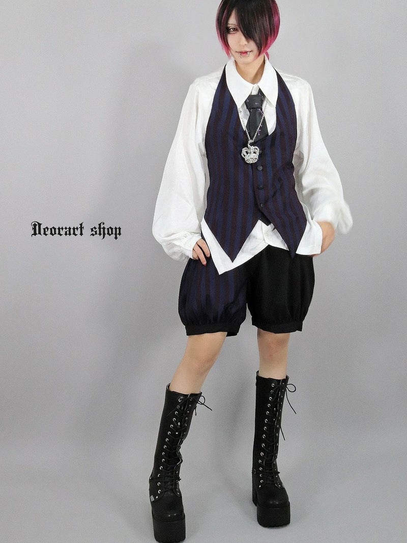 Deorart,ディオラート,V系,ストライプ,ホラー,地雷系,執事風ギャルソン,マント,王子,カボチャパンツ,ドロワーズ,バルーンショートパンツ,ショートパンツ,中世,セットアップ,V系,ヴィジュアル系,コーデ,ホスト,コンカフェ,ライブ,ファッション,ダンス衣装,メンズ,レディス,男装