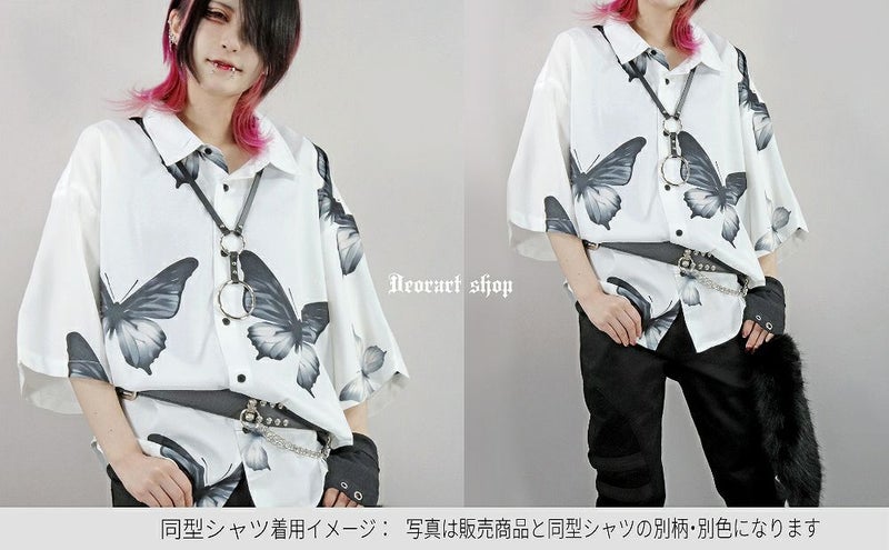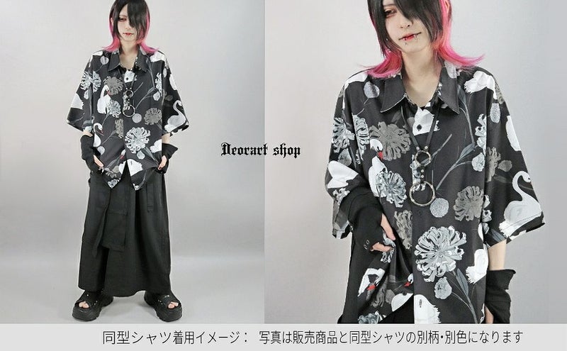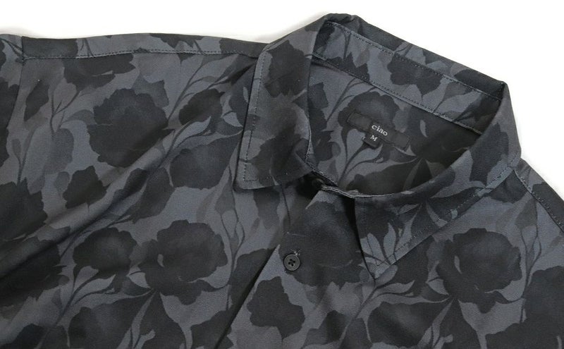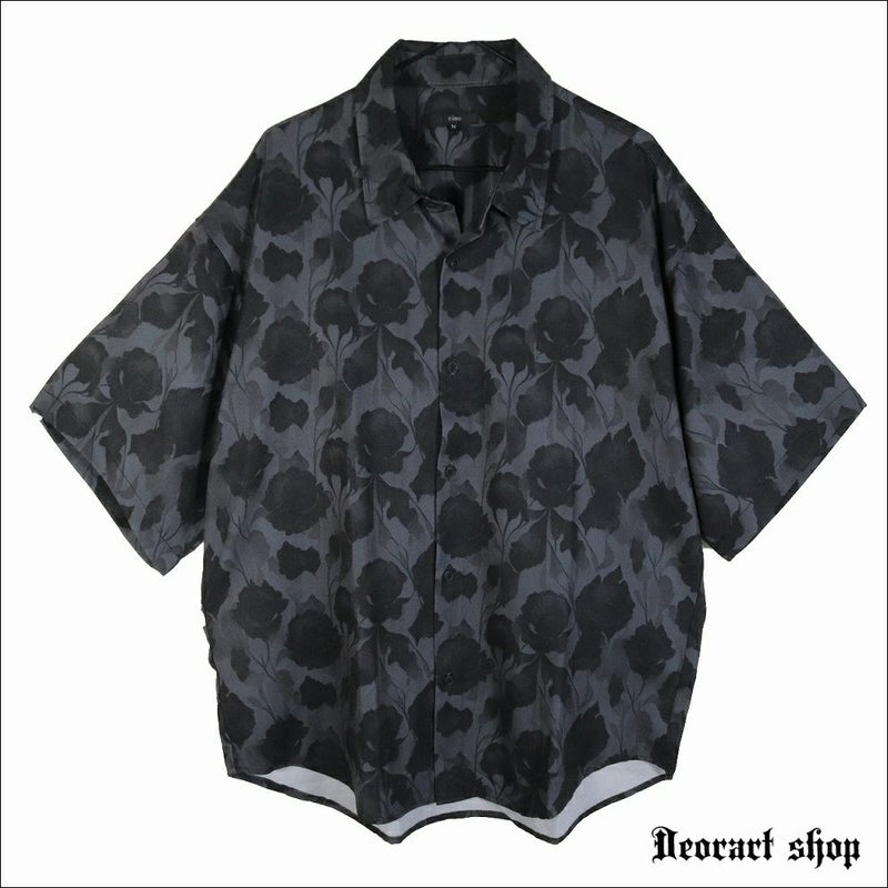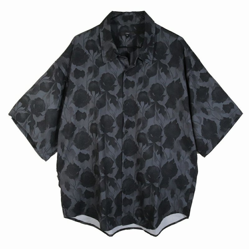 BY7085 [五分袖] ルーズシルエット・ブラックローズ柄 シャツ (セレクト・アイテム)