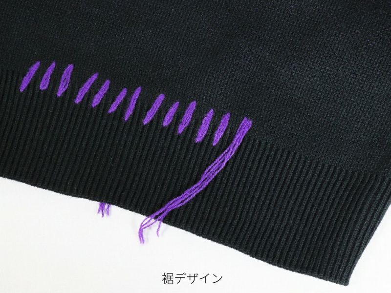 BY7079 ダメージ風加工・ライン・バタフライ ニット