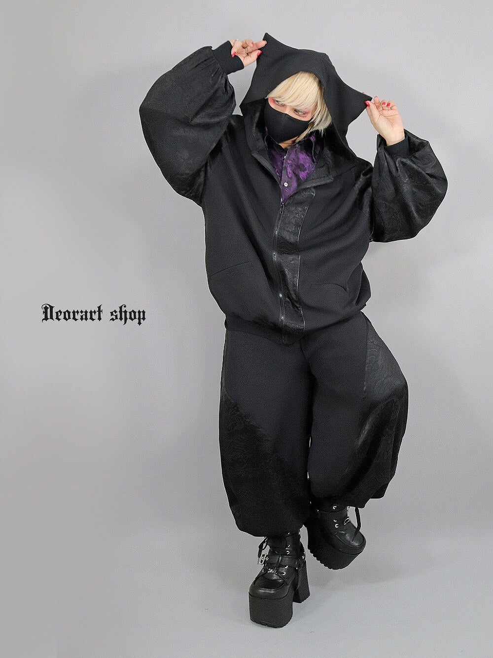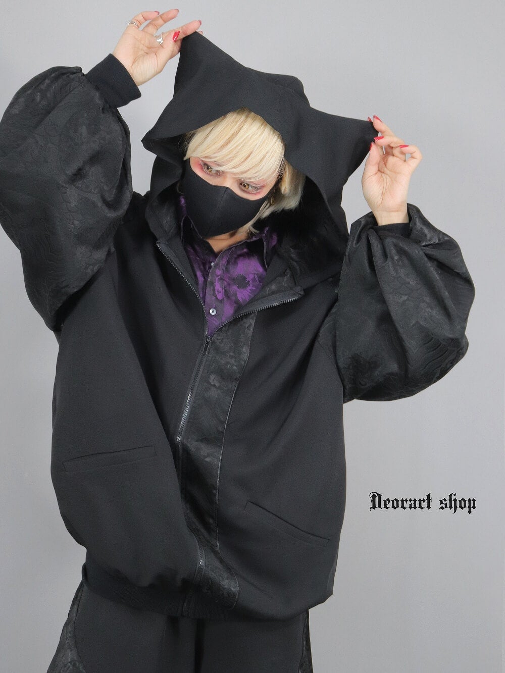 DRT2870 [ 闇猫 ] ジャージ風 KIMONO袖・ネコミミパーカー[ 着物袖 ]