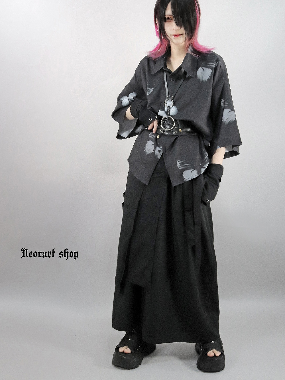 BY7099 ルーズシルエット・ダークカラー ローズ柄 総柄 シャツ[dark rose]