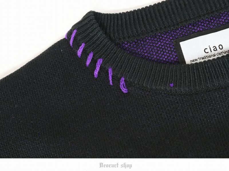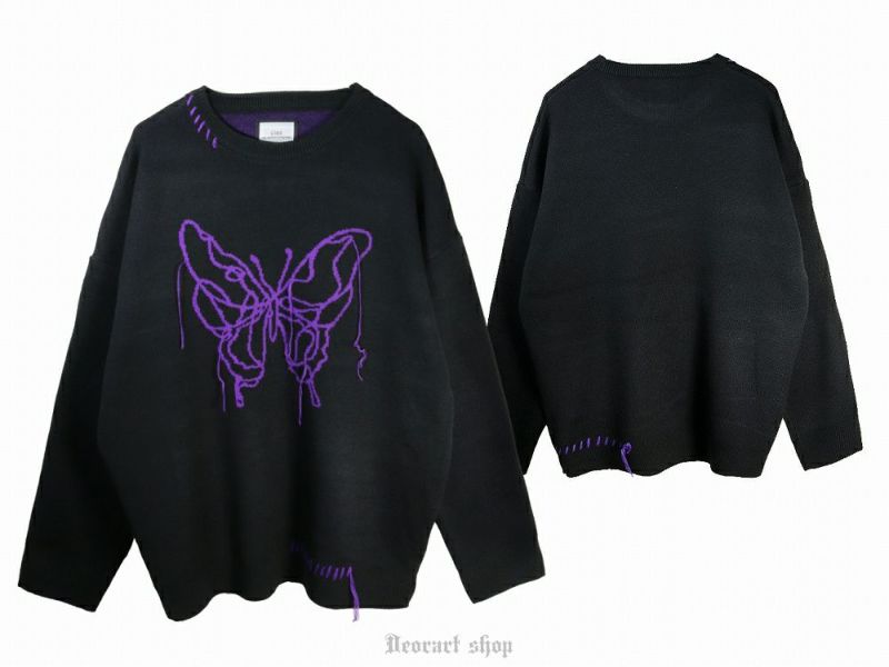 BY7079 ダメージ風加工・ライン・バタフライ ニット