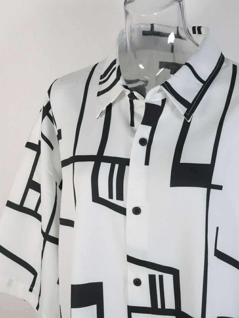 ・こちらのアイテムは、バイヤーセレクト入荷アイテムになります モードな幾何学柄が重ね着にもオススメなリラックスサイズの五分袖シャツ。 柔らかくとろんと落ち感のある生地はシワになりにくく、体型を選ばずに着ていただけます。オーバーサイズで、スリムスタイルのパンツとのコーデや 抜け感のあるキレイめシャツスタイルにオススメです。