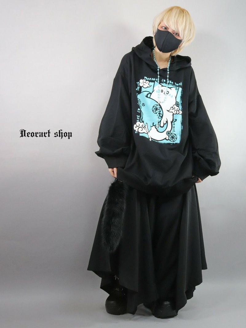 Deorart,ディオラート,地雷系,猫耳パーカー,ネコミミパーカー,白狐,九尾,和柄,妖怪,招き猫,ケモ耳,フード,V系,emo,punk,rock,原宿 ,ゴシック,モード,ファッション,服,通販