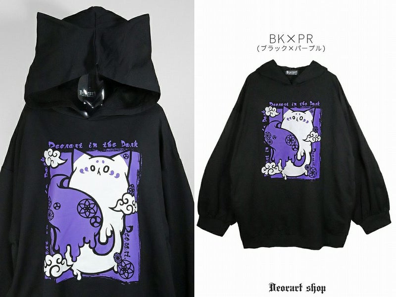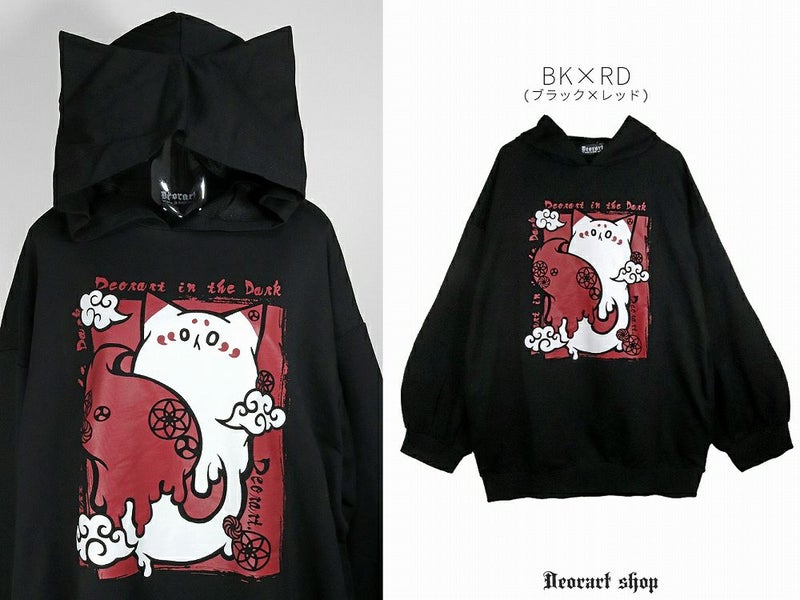Deorart,ディオラート,地雷系,猫耳パーカー,ネコミミパーカー,猫柄,和柄,妖怪,招き猫,ケモ耳,フード,V系,emo,punk,rock,原宿 ,ゴシック,モード,ファッション,服,通販