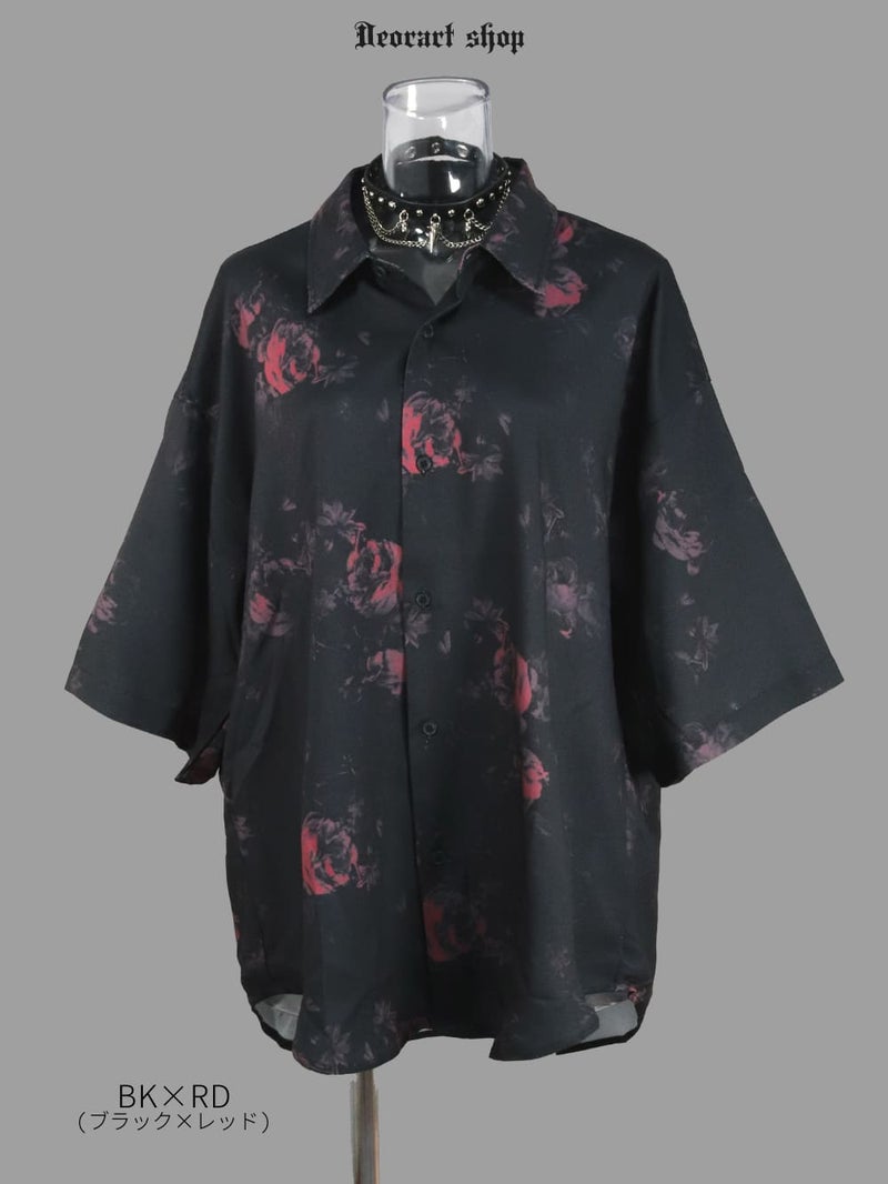 BY7098 ルーズシルエット・ダーク ローズ 総柄 シャツ