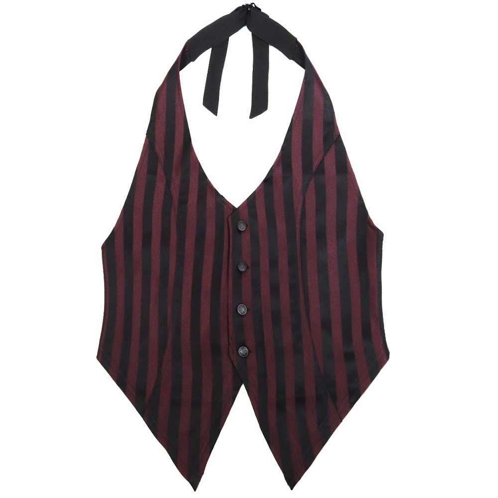 クラシカルなシルエットのホルターネック ベスト・ジレ。 シックなカラーのストライプ柄で ゴシック&高級感のある雰囲気に仕上げたベスト・ジレアイテム。 イベントシーンでも存在感抜群なこだわりのシルエット。 ゴシックスタイルの定番、シャツ&ベストコーデを ひと味差のつく大人な雰囲気にブラッシュアップ。 別売りの同ストライプ柄 バルーンショートパンツ・フラップベルトとのセットスタイルもオススメです。